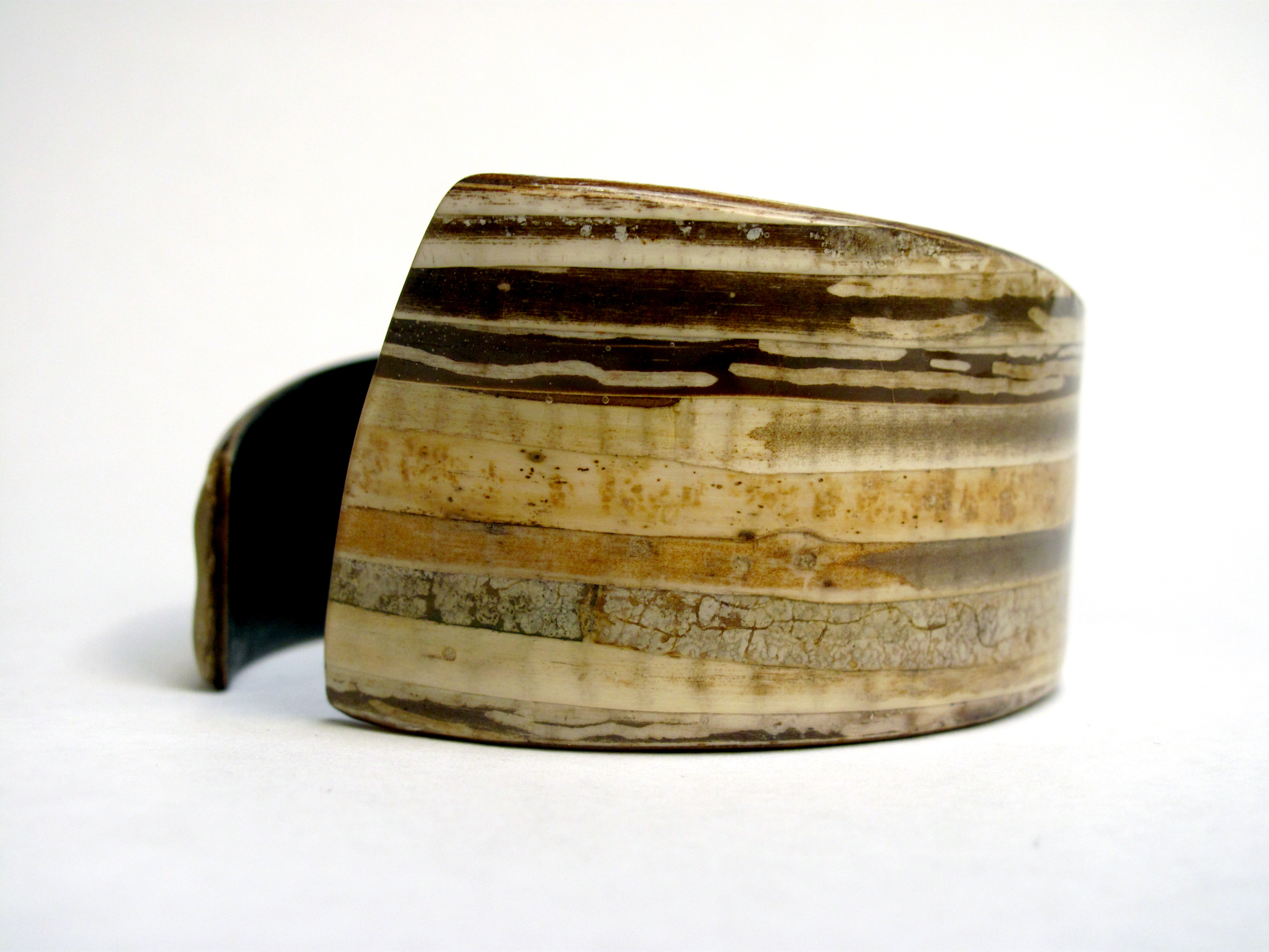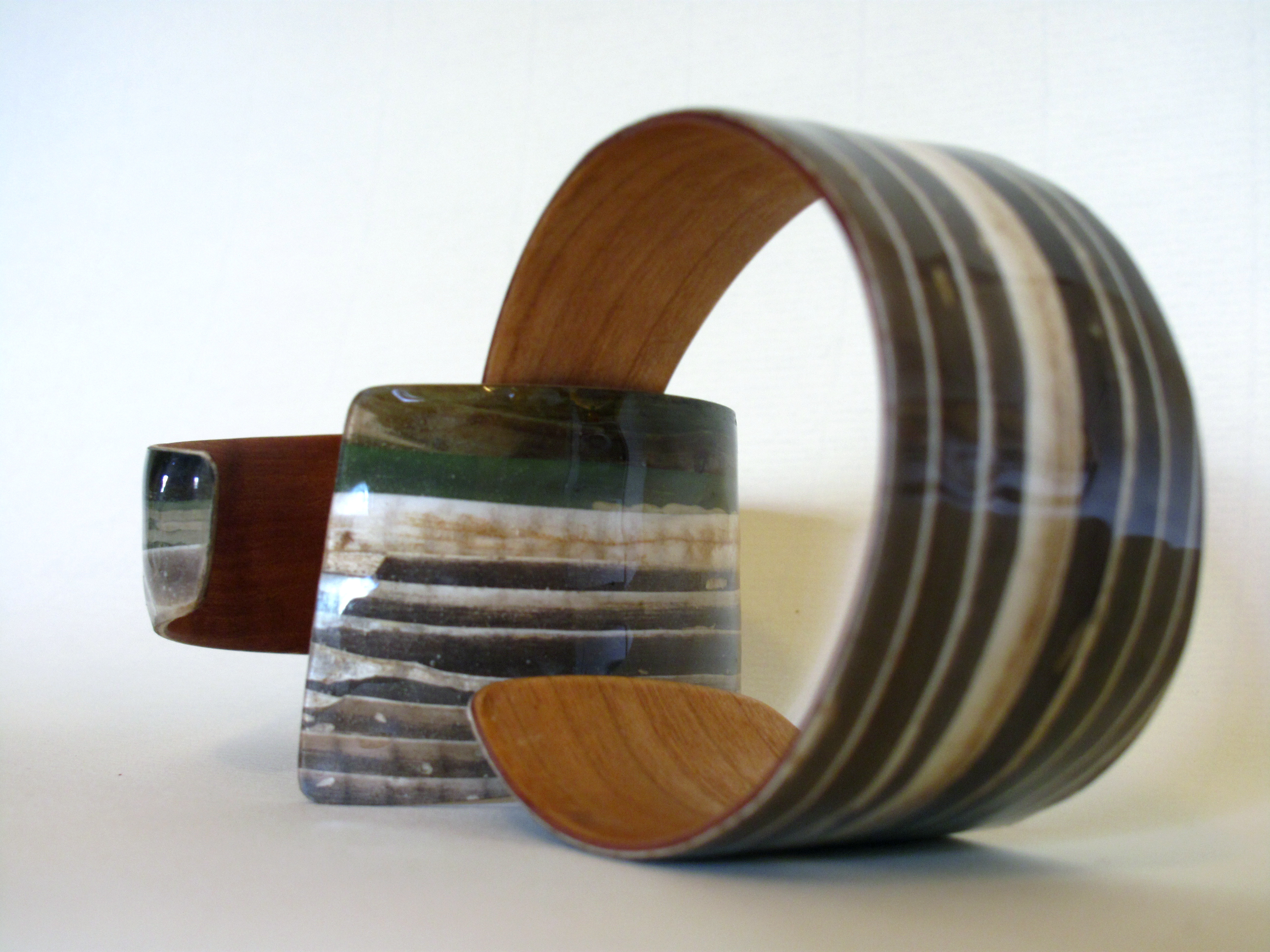 bangles and necklaces made from Western Australian seagrass, veneers, resin, found jarrah and natural fibres